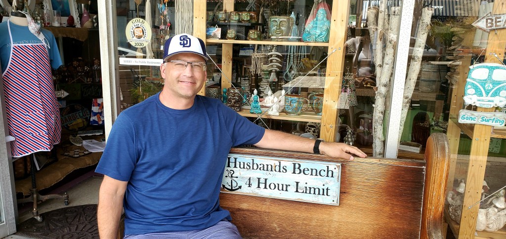 We spent some time shopping in downtown San Clemente, a favorite spot with lots of cute boutiques and Joel spent some time on the “husband’s bench” waiting me out! We are so limited on space, we can’t take on much more, but there is always a cute blouse that I can’t resist. I am already going to have to get rid of a few more things to make room.