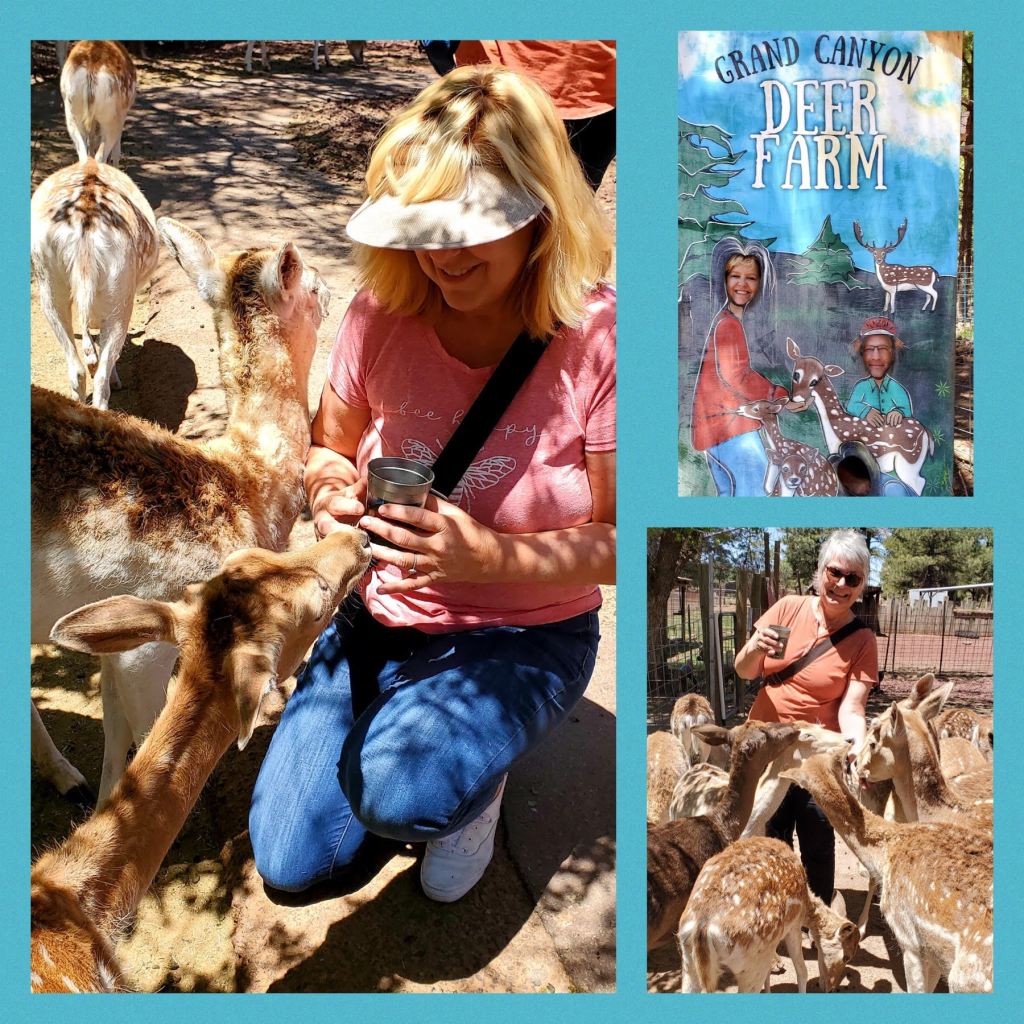 We spent another day at the Grand Canyon Deer Farm. We have all visited before, but this is not to be missed when you are in the Williams’ area. The deer are very friendly when you have a cup of food in your hands, not so much once it is gone! They are ever hopeful though, so come around to check if you have gone for a refill. In addition to deer, they have all sorts of other creatures including reindeer, a camel, miniature horses, a zonky (yes, you read that right, a mix between a donkey and a zebra), and prickly porcupines just to name a few. You can get up close with most the creatures who come in as rescues and their staff is super friendly and informative.