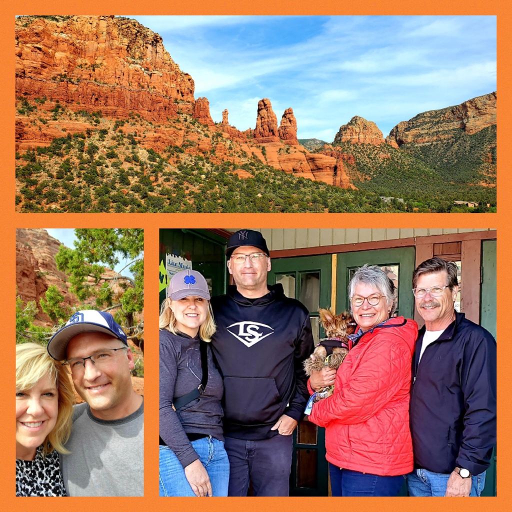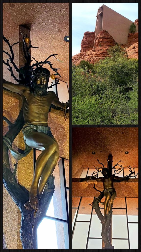 Williams is about 1hr 20min to Sedona, AZ so of course we took the drive down. The winding drive down through the mountains into town is so beautiful, it’s simply breathtaking. On this trip we visited the Chapel of the Holy Cross, which none of us have been to before. It sits high atop the red rocks and though Catholic in faith, its doors are open to all for a visit. Once you arrive, you walk up a circular ramp that takes you to the entry doors. I was more than surprised upon entering to see a 90 foot tall iron cross with Jesus looking down as he hangs from the cross, his eyes are piercing. There is such a deeply spiritual feel to it, I had to sit in a pew and just pray. So thankful for our good friends, this great trip and how fortunate we are to have these opportunities. May God bless each of you!
