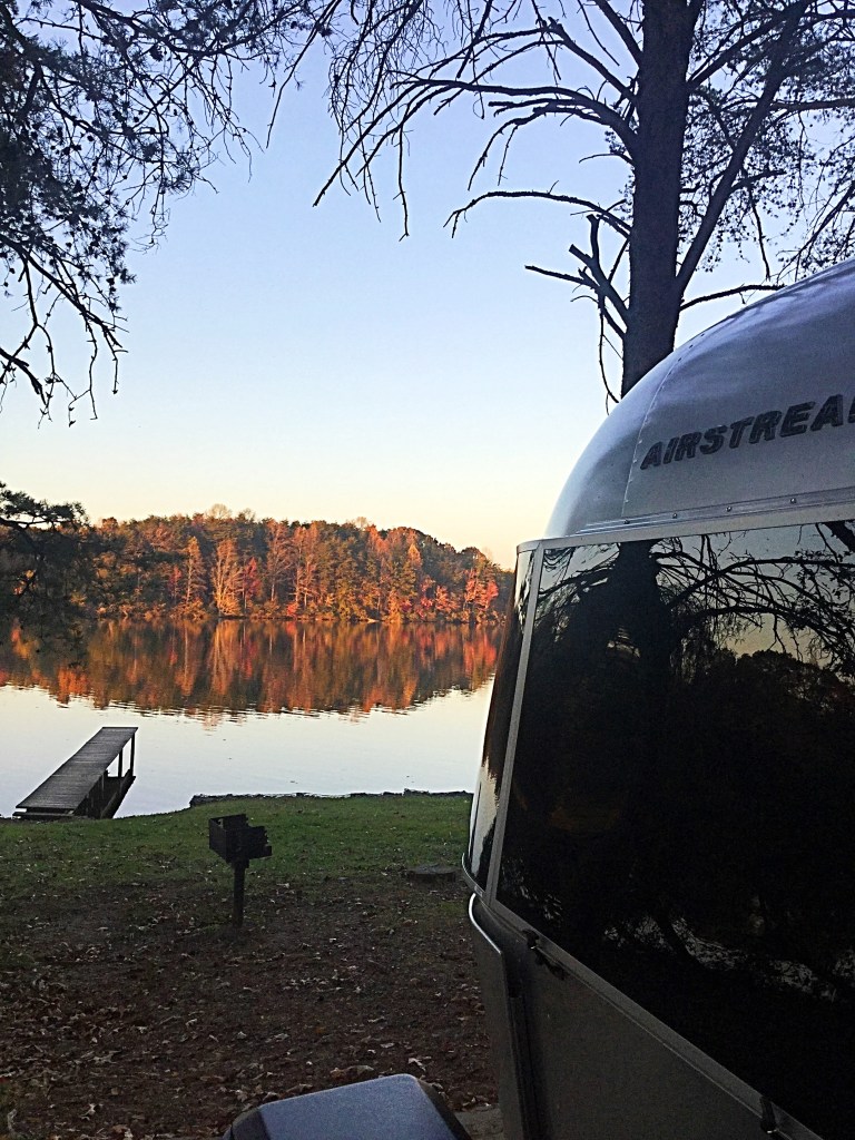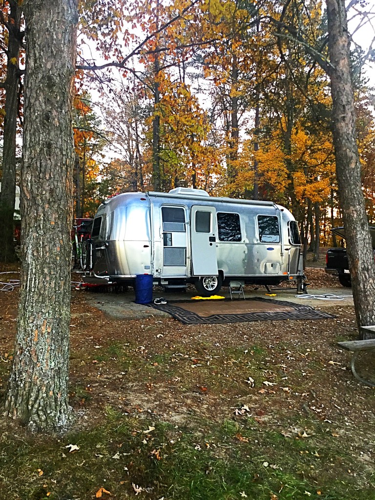 We were lucky enough to be heading through this part of the country in late fall when the leaves were turning gorgeous autumn colors. The campground fronts a beautiful lake with a small wooden dock and fishing is allowed. Campers may also bring a boat (if you have one) and launch nearby. I am not sure if motorized boats are allowed, as the lake was pristine and empty the whole time we were here. The nightly rate is amazing at $35 per night, which includes full hookups, bathroom/shower (heated!) facilities, laundry, cable and WiFi. The camp host was very friendly and happy to provide restaurant and activity recommendations. Even though it looks like you are in the wilderness, shops, restaurants and activities are all very close by.