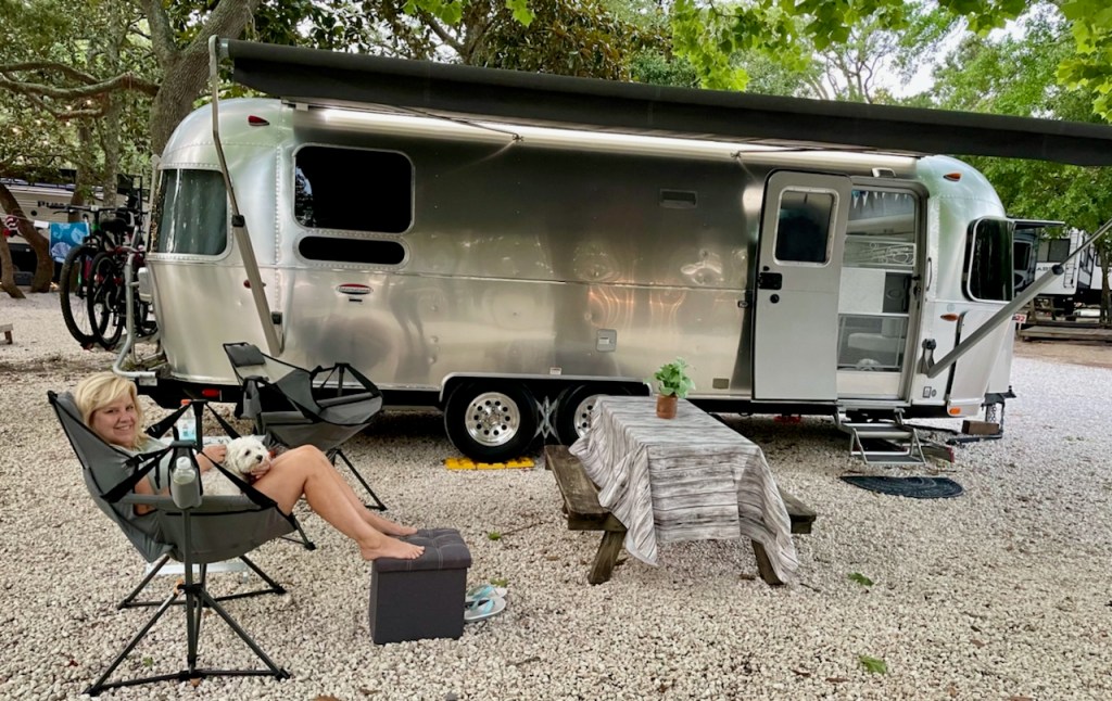 We were pretty excited about staying at an ocean front RV park, the first of this trip. We have never stayed on the Gulf Coast or the Florida panhandle before. The water was crystal clear blue, 84 degrees and the sand was a fine sugar white. We were lucky to get two sunny days in a row, the first we spent in Destin, the second at the beach in Navarre. There was a consistent ocean breeze that helped keep us a bit cooler than the 90 degree day would have otherwise been. However, once you leave the beach, all bets are off – ha ha!