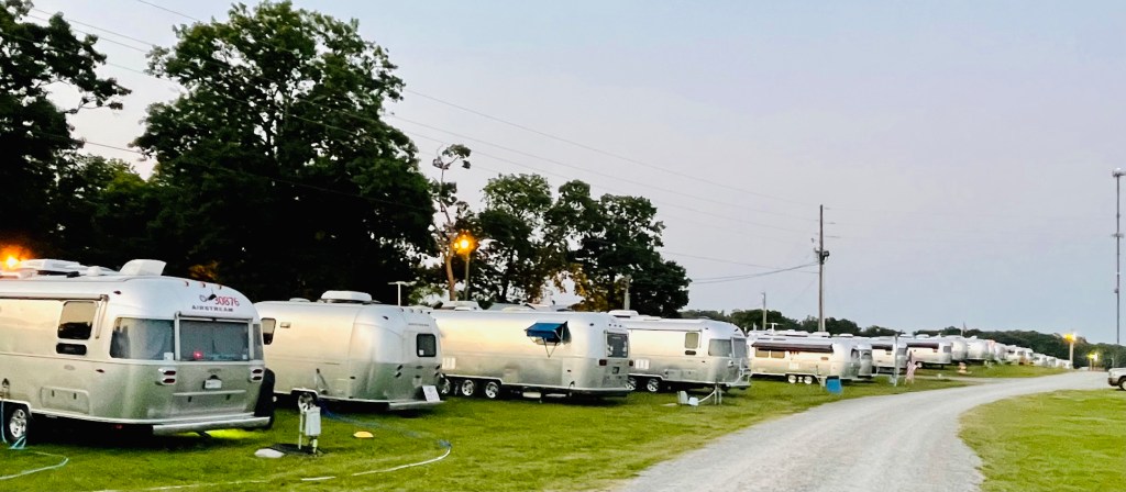 We pulled into the 64th Annual International Airstream Rally and it was a site to behold 800+ Airstreams lined up in a huge field in Lebanon, TN (about 30 min. outside Nashville). The location was at the Lebanon Fairgrounds which is a sprawling 70 acre complex of open fields (with hook ups~!), pole barns, and a historic village called “Fiddler’s Grove” which features a blacksmith shop where we watched them teaching 18th century blacksmithing.