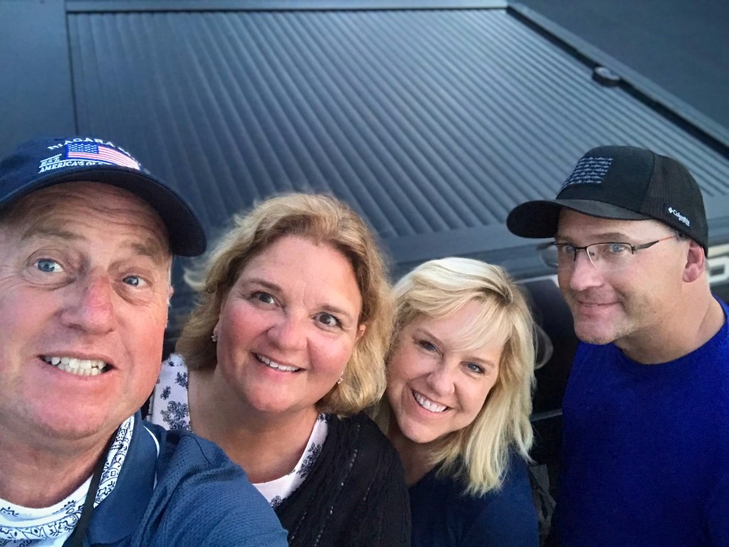 First, we had the coolest neighbors, Ty and Amy (love these guys!) and Ty is the quintessential nice guy, helping Joel with putting air in our trailer tires (he’s never checked them this entire trip – – they were 20 lbs low each—-arrrgghhhh!). But there was this elderly couple in the row directly in front of us and honestly, I thought the man may have been suffering from some early-stage dementia because earlier he was walking by our trailer angrily talking with no one else around and it didn’t seem like he knew where he was going, kind of wandering. Later that evening, I hear a woman screaming “STOP, STOP, STOP” I thought she was being attacked. I wasn’t feeling well and was already in my jammies, so of course I shoved Joel out the door to see what was going on to help.