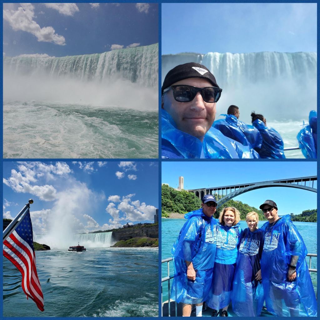 We were so excited to meet up with our good friends Maureen and Ben in Niagara Falls, NY. It was a first visit for all of us, except Joel visited with his family when he was 5. Wow, what an awe inspiring sight it is to see Niagara Falls. We took the Maids of the Mist boat tour right up to the edge of the falls, we were rocking and rolling from the pounding water and got nice and wet from the mist. There was a thunderous roar and you could feel the powerful force of nature as water crashed over the edge of the falls. It’s hard to believe that this amount of water can completely freeze in winter….brrrr!