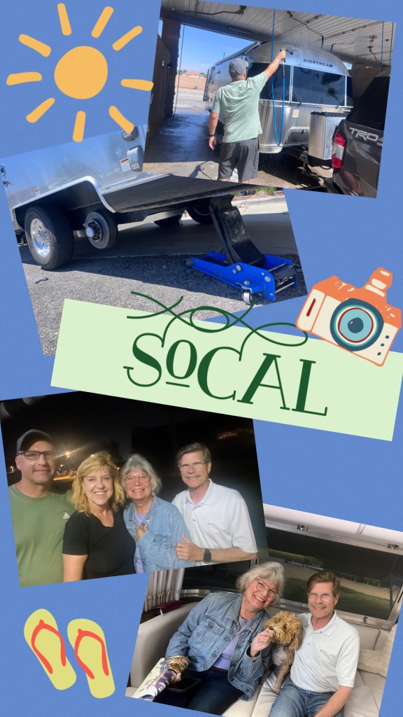 SoCal is already delivering sunshine, good vibes, and just enough mechanical drama to keep us humble. We’re here for 10 days, grateful for friends, cinnamon rolls, and trailer tires that (currently) hold air.