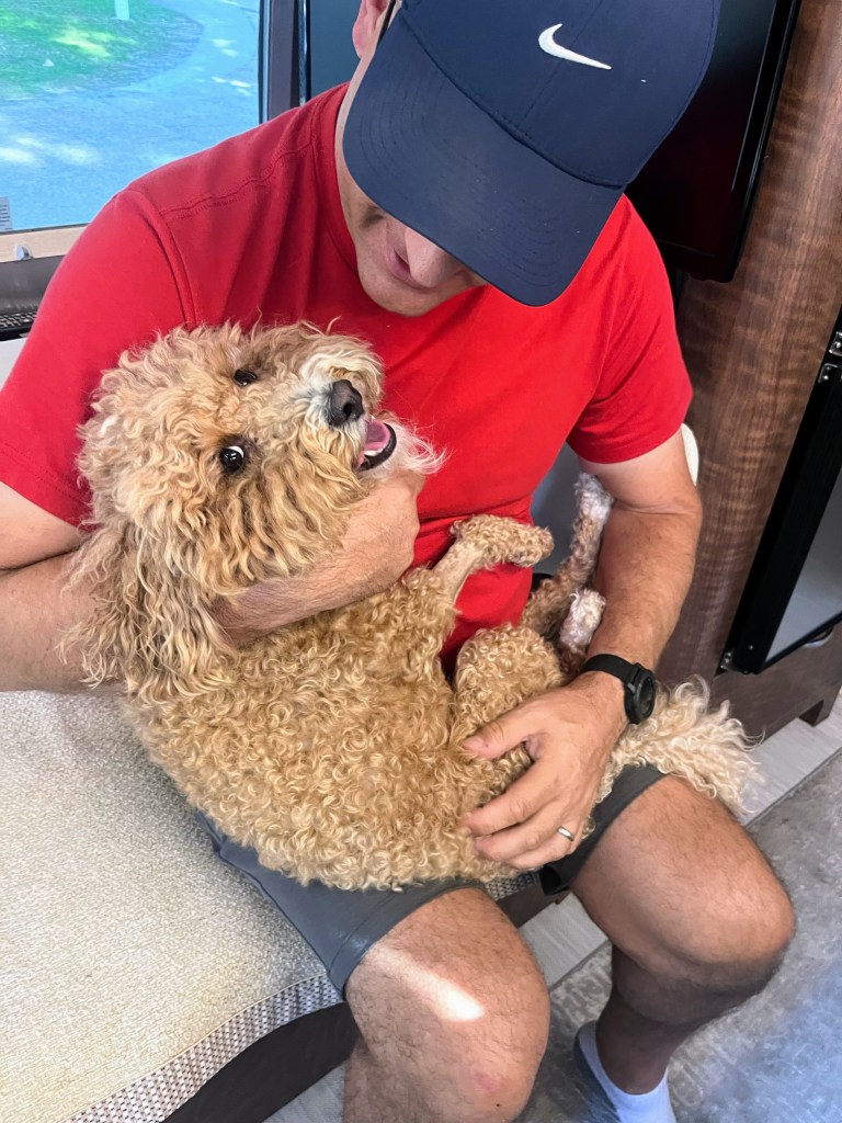 After 2,500 miles, a few near-storms, tire-melting 110 degree weather, and an endless loop of “are we there yet?” (mostly from the humans), we officially rolled into Southern California! First stop: Lake Elsinore, where the skies are blue, the tacos are tasty, and our dear friends Linda and Thurman greeted us with open arms, restaurant reservations, and stories like we never missed a beat